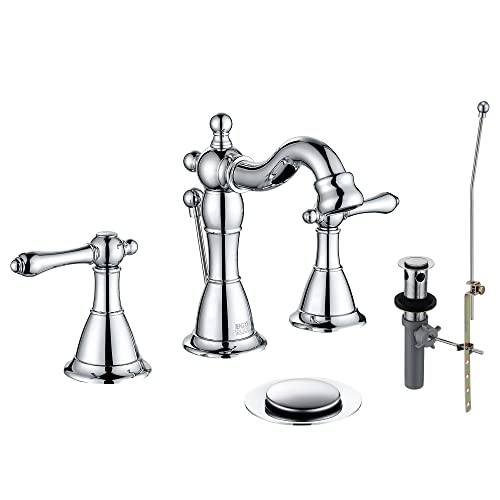 Professional reviews from industry experts 8 inch Polished Chrome Widespread Bathroom Faucet,3-Holes Wide Spread Set Vanity Two-Handle Lavatory Sink Faucet,with Lift Pop-up Drain Assembly